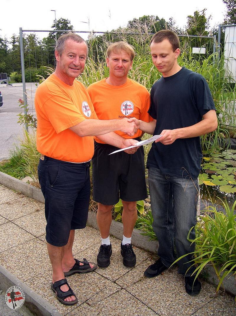 Zu Beginn des Club-Grill-Abends konnten Peter Bruckner und Heinz Gratzl, Obmann- und Obmann-Stv. des Tauchclub Thayatal - Austria den Aufnahmeantrag unseres 70. Mitgliedes, Benedikt Boncel, entgegennehmen.