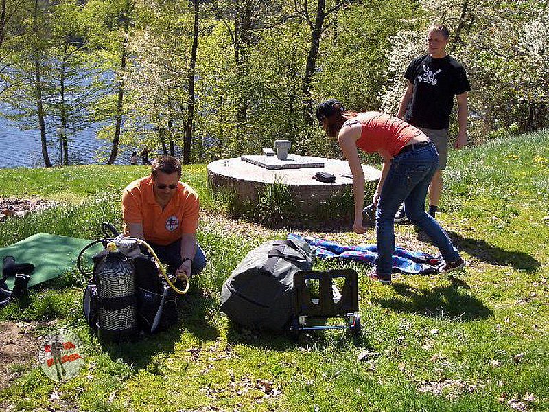 5 Taucher und einige Schwimmer nutzen die Fluten um sich abzukühlen. Bis ca 10 m waren die Sichtverhältnisse eher schlecht. Darunter herrschten gute Sichtverhältnisse und die Wassertemperatur betrug ca 5 - 7 Grad C. Nach einem reinigenden Bad bei der Plattform wurde der Tauchgang auch gleich zur Seenreinigung genützt.