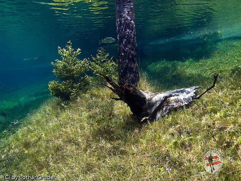 Im vom Einstieg rechten Teil des Sees hat sich am hinteren Ende eine Insel gebildet. In diesem Bereich sind auch die meisten Fotos entstanden. Ein weiterer Vorteil - dorthin „verirren“ sich auch selten andere Taucher, eigentlich schade. Aber andererseits gut für beste Sichtbedingungen.